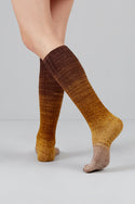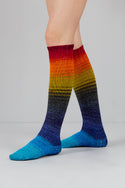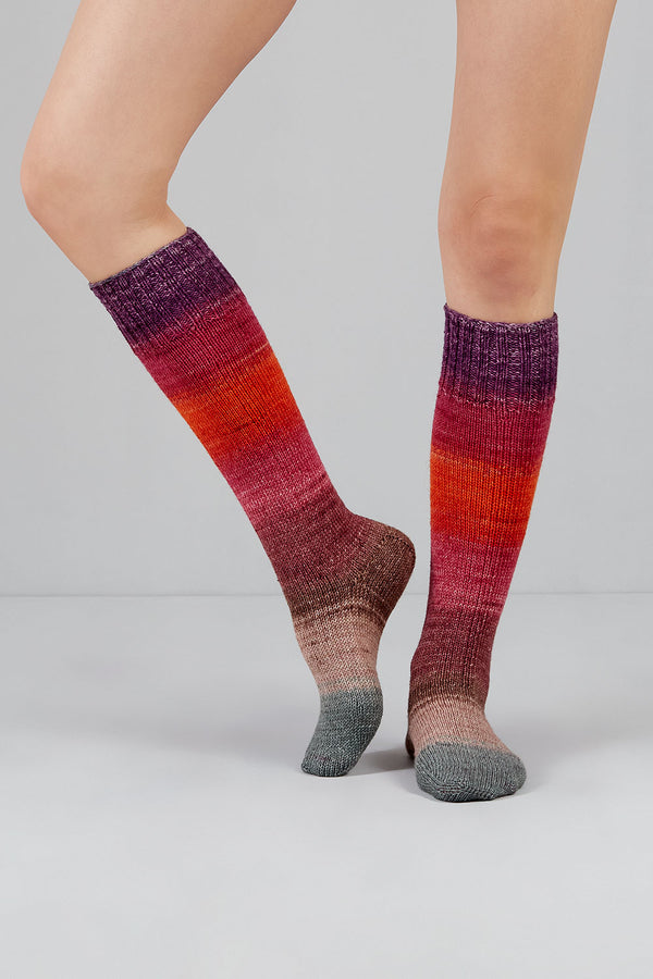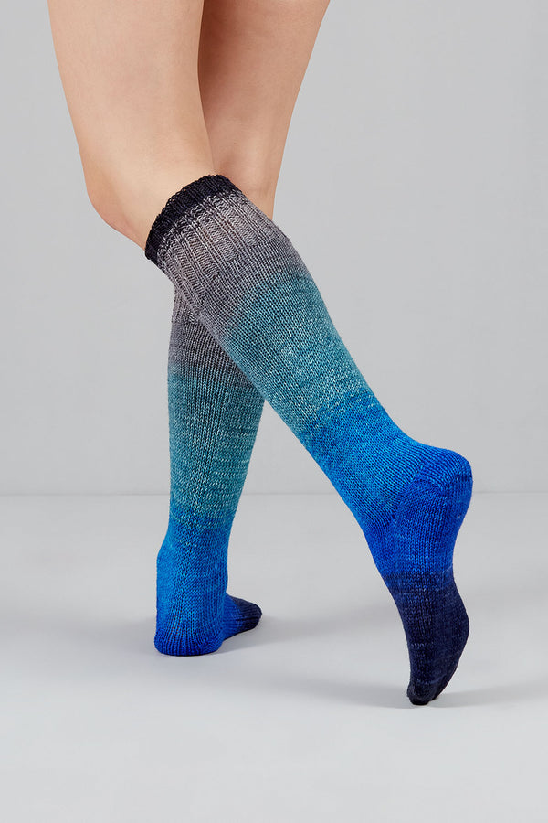 Echoes Aran is dyed in reverberating tones of rippling color, sometimes in shades of the same palette, sometimes flowing in complete contrasts. A fun way to give simple designs more emphasis through shifting color progressions.