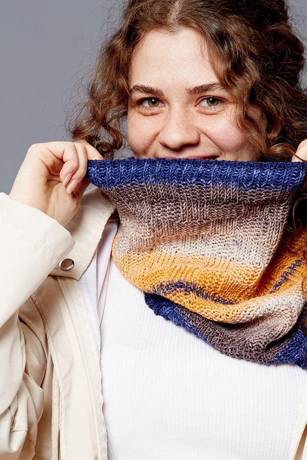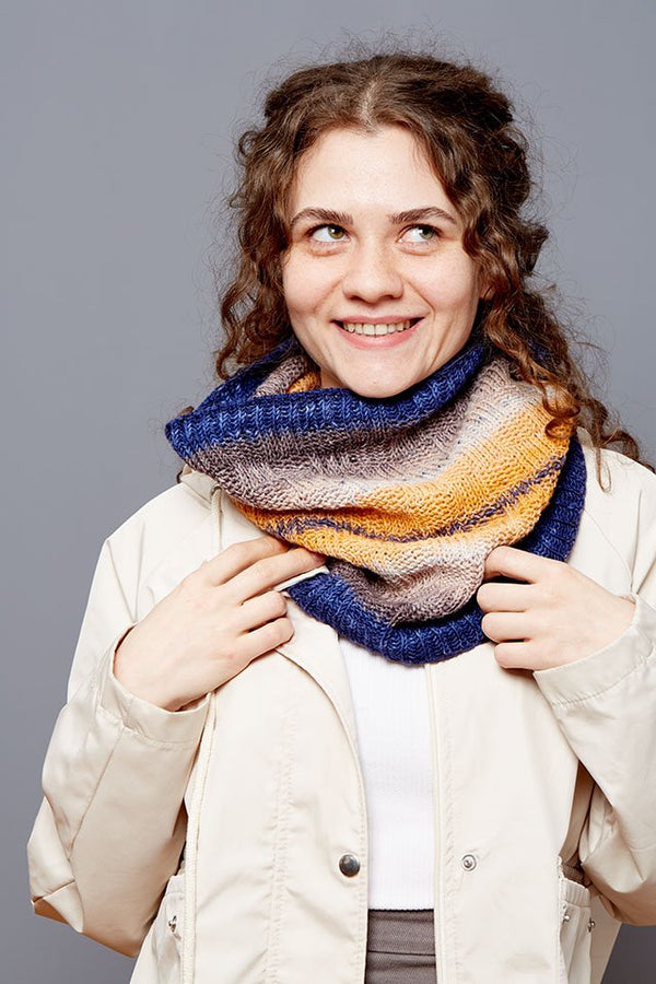 Cubes & Hues Cowl - 1 skein Echoes, Dimensions: 28.8’’/ 73 cm circumference x 14.2’’ / 36 cm length