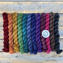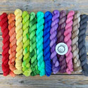 This kit Includes: 12 Targhee Pigtails, each measuring appx 25g / 100 yds; 90% Superwash Targhee, 10% Nylon.
