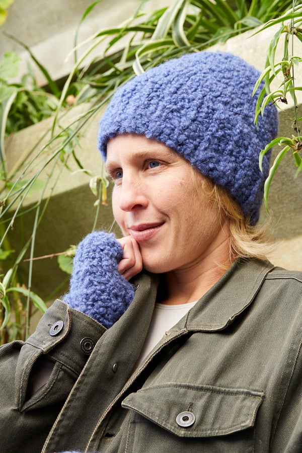 Four basic cold weather accessories to mix and match in cozy colorful Lanalpaca, an all-natural boucle yarn in a 50/50 blend of superbaby alpaca and merino that's warm, cuddly, lusciously soft and works up quickly!
