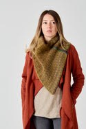 A simple rib lace rectangle in spiral curve layers of color and texture, combining self-striping yarn with lush mohair.