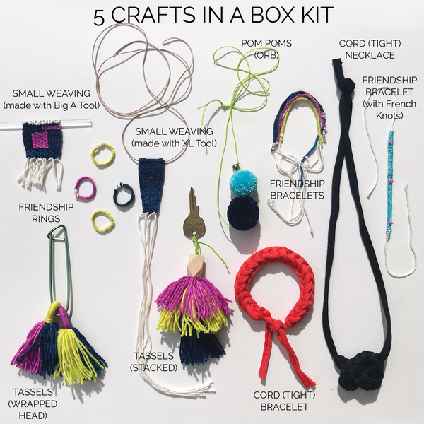 Totally fun! This 5-Crafts-in-a-Box kit lets you try your hand at all five crafts (pom pom, tassels, friendship bracelet, weaving and cord) that the Loome tool can make.