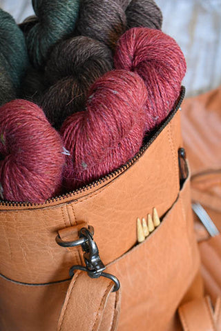 The larger knitting bags have pockets and options for storing your tools and there is room for several yarn skeins or bigger knitting projects.