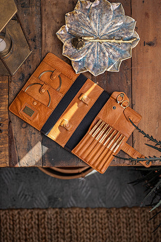 The smaller bags and cases are designed for smaller notions like measuring tape, scissors, and needles or for keeping order in your knitting needles or crochet hooks.