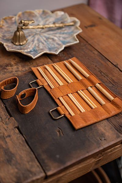 The Carita C is a practical case made from the finest leather. It offers great storage space for organizing your double-pointed needles & crochet hooks. It is detachable, so you can either take it with you when you are out and about, or you can attach it to the Carita bag like a document in a ring binder.