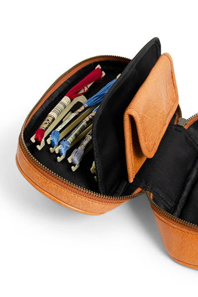 Do you love keeping your crafting tools neatly organized? Then the Erinna leather case is your go to helper. The case is made by hand in genuine leather and is designed to keep track of your embroidery threads and favorite tools.