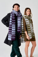 Two blocks of color transition and fuse together. They race each other and change their speeds while merging with stripes and forming their space in opposite sides of this reversable chunky scarf. Accoloration is knit up in Lanalpaca, an all-natural boucle yarn in a 50/50 blend of superbaby alpaca and merino that's warm, cuddly, lusciously soft and works up quickly!