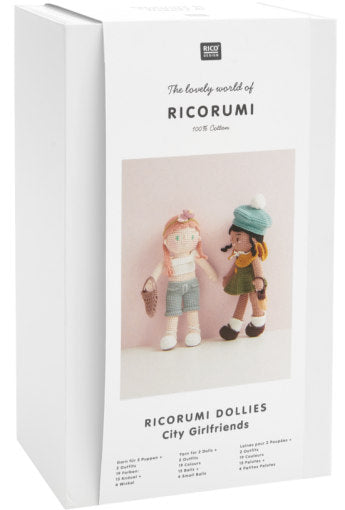 Matching the “Ricorumi Dollies” pattern book, this yarn set contains all the colors you need to crochet these cute dolls and their outfits. You can dress your doll in the finished pieces as you wish & combine and try out different looks.