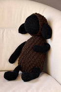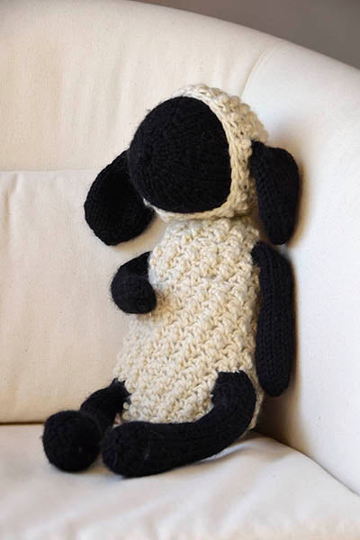 Sheldon's legs, arms, and head are knit, while his body and cap are crochet.