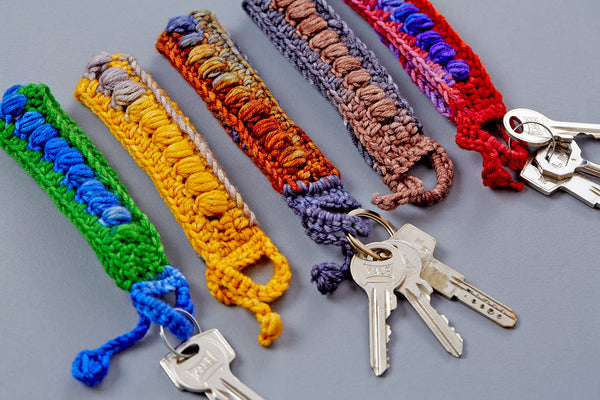 This cute little crocheted keychain will bring a colorful personal touch to your keys or bag, using small amounts of Uneek Worsted. Attaching optional beads or charms to the end of the chain in the final step adds a personal touch to your Bonjuk keychain. Bonjuk means “bead” in Turkish, pronounced “BON-juk”.