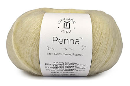 Spun in Italy, Penna is a luxurious lace-weight blend of Baby Suri Alpaca, Extra Fine Merino, and Nylon.